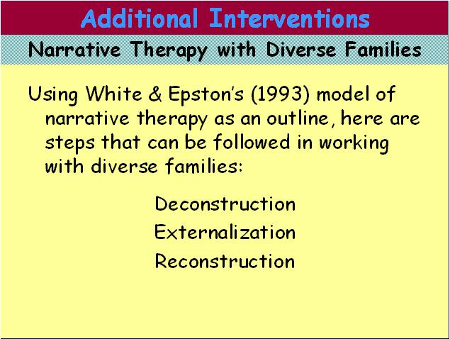 14 In White and Epston's Model for Narrative Therapy, what does the Externalization